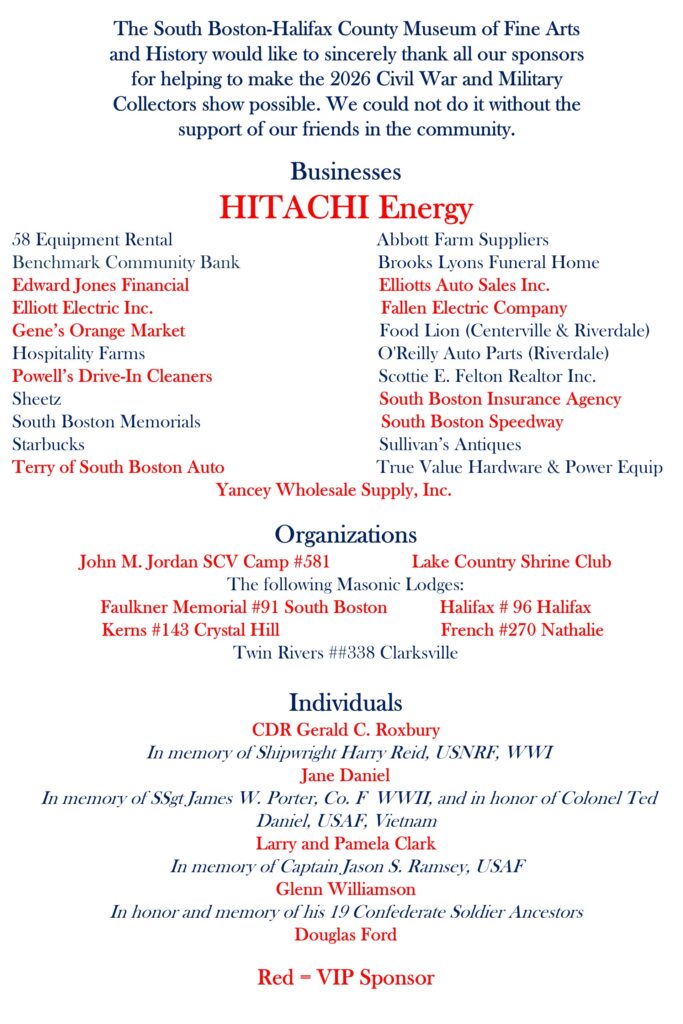 Eighth Annual Civil War & Military Collectors Show Sponsors Recognized